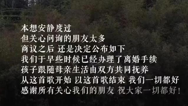 离婚声明发出来以后,两个人都表现得挺平静。没有互相指责,没有撕破脸,孩子归女方抚养,男方承担抚养费。这种处理方式算是比较体面的了。比起那些离婚时闹得鸡飞狗跳的,他们已经算是好聚好散。