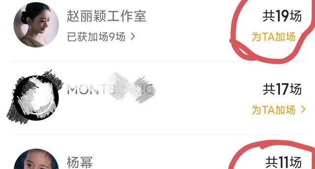 首先,当两人场次一样时,意外发现赵丽颖下面出现了一场加场。