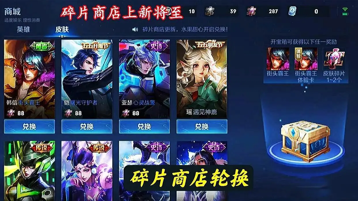 碎片商店上新,孙尚香无双来袭,虞姬传说限定美哭,首款星典藏确定