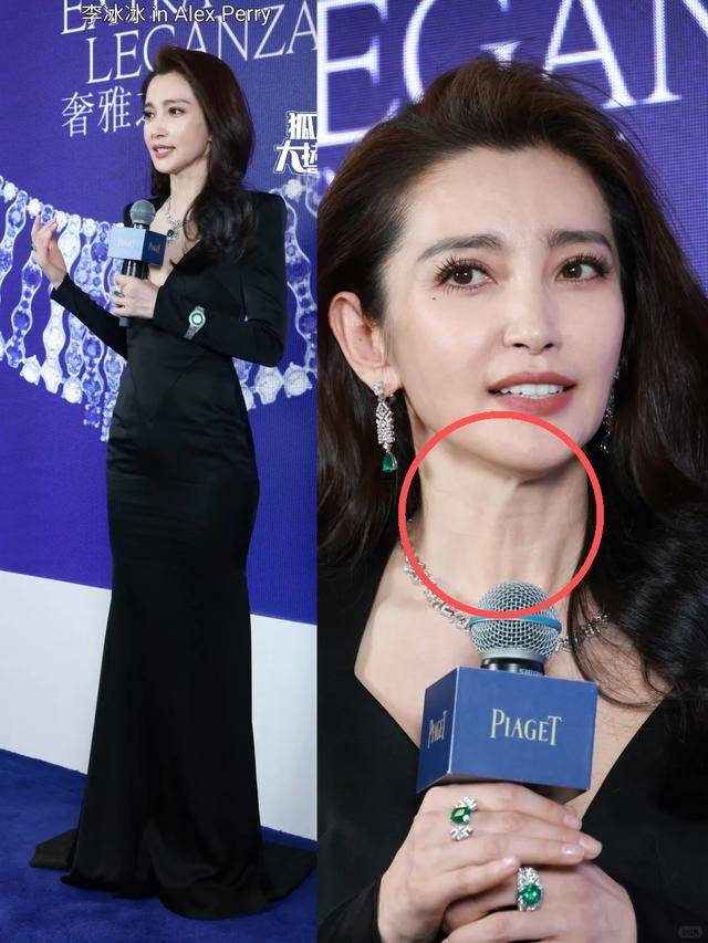 镜头怼脸观看,李冰冰脖子上和下巴上的皮肤也都彰显出了她的年龄,松弛臃肿,这是任何女星都无法阻挡的身体自然衰老。