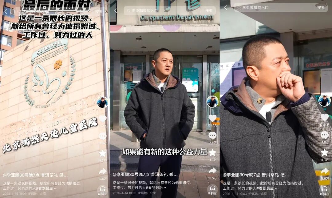 1月14日,李亚鹏发布 31 分钟无剪辑采访视频《最后的面对》,首次坦诚嫣然天使儿童医院面临关停的困境,披露医院 13 年完成 1.1 万台唇腭裂手术、7000台全免费的核心数据,坦言 “情怀大过能力”,不回避责任的态度收获大众好评。