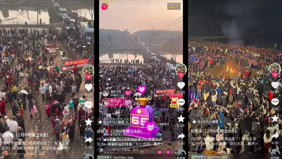 其二, 年关节点,杀猪宴本就是乡村春节的标志性场景,承载着乡情、亲情与团圆的美好寓意,而这场隔空发起的邀请,既满足了部分用户“凑热闹”的心理,也能让被快节奏都市生活裹挟的群体,通过这场“云赴宴”获得心理慰藉,同时填补了大众对返璞归真生活的向往,形成跨年龄层的情感共鸣。